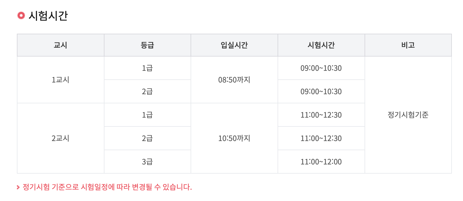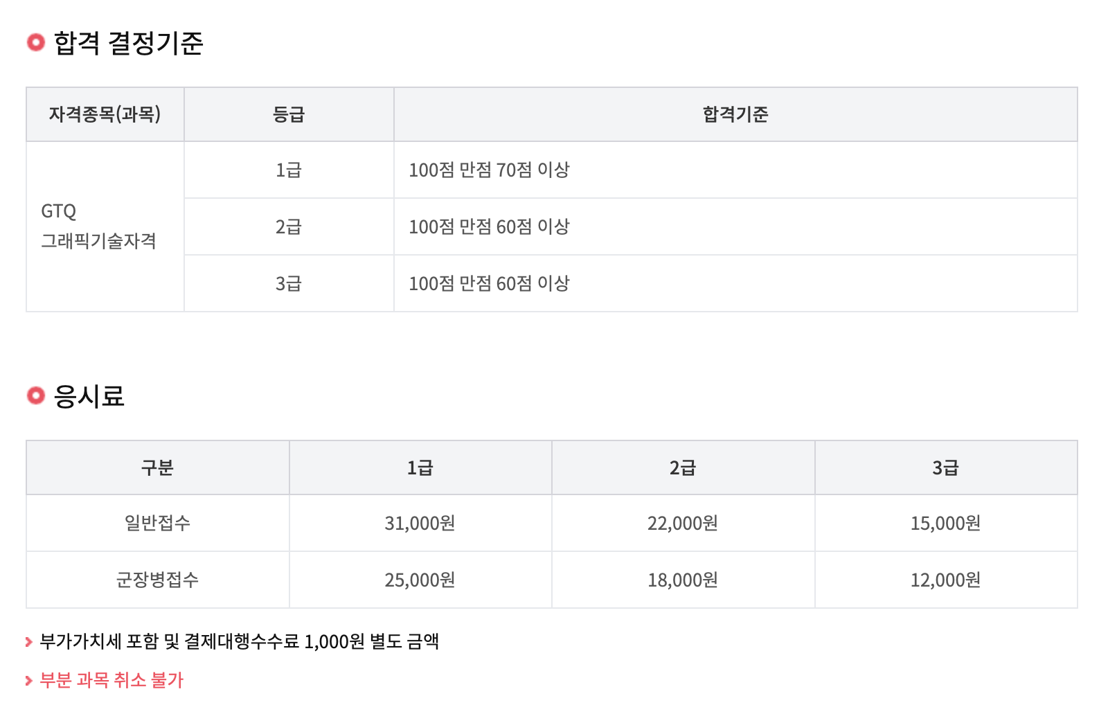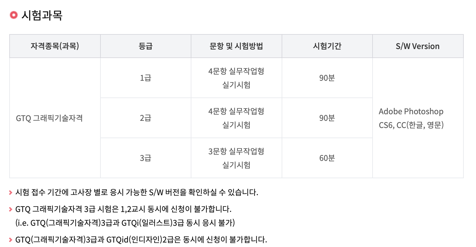 2. GTQ 시험 시간과 과목 응시료